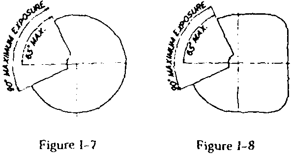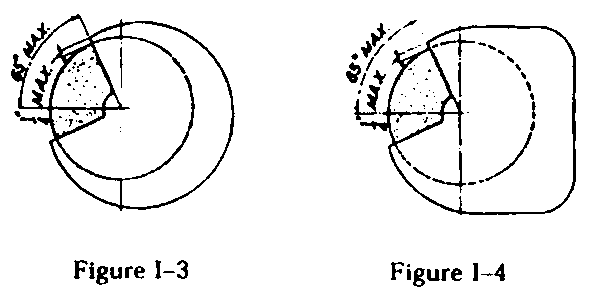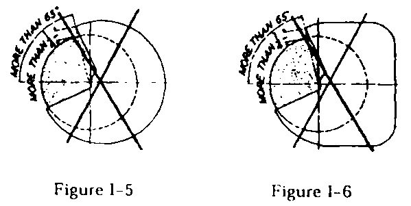 Condition of tools. All hand and power tools and similar equipment, whether furnished by the employer or the employee, shall be maintained in a safe condition. Guarding. When power operated tools are designed to accommodate guards, they shall be equipped with such guards when in use. Belts, gears, shafts, pulleys, sprockets, spindles, drums, fly wheels, chains, or other reciprocating, rotating or moving parts of equipment shall be guarded if such parts are exposed to contact by employees or otherwise create a hazard. Guarding shall meet the requirements as set forth in American National Standards Institute, B15.1-1953 (R1958), Safety Code for Mechanical Power-Transmission Apparatus. "Types of guarding." One or more methods of machine guarding shall be provided to protect the operator and other employees in the machine area from hazards such as those created by point of operation, ingoing nip points, rotating parts, flying chips and sparks. Examples of guarding methods are - barrier guards, two-hand tripping devices, electronic safety devices, etc. "Point of operation guarding." 1926.300(b)(4)(i) Point of operation is the area on a machine where work is actually performed upon the material being processed. 1926.300(b)(4)(ii) The point of operation of machines whose operation exposes an employee to injury, shall be guarded. The guarding device shall be in conformity with any appropriate standards therefor, or, in the absence of applicable specific standards, shall be so designed and constructed as to prevent the operator from having any part of his body in the danger zone during the operating cycle. 1926.300(b)(4)(iii) Special handtools for placing and removing material shall be such as to permit easy handling of material without the operator placing a hand in the danger zone. Such tools shall not be in lieu of other guarding required by this section, but can only be used to supplement protection provided. 1926.300(b)(4)(iv) The following are some of the machines which usually require point of operation guarding: 1926.300(b)(4)(iv)(a) Guillotine cutters. 1926.300(b)(4)(iv)(b) Shears. 1926.300(b)(4)(iv)(c) Alligator shears. 1926.300(b)(4)(iv)(d) Powered presses. 1926.300(b)(4)(iv)(e) Milling machines. 1926.300(b)(4)(iv)(f) Power saws. 1926.300(b)(4)(iv)(g) Jointers. 1926.300(b)(4)(iv)(h) Portable power tools. 1926.300(b)(4)(iv)(i) Forming rolls and calenders. 1926.300(b)(5) "Exposure of blades." When the periphery of the blades of a fan is less than 7 feet (2.128 m) above the floor or working level, the blades shall be guarded. The guard shall have openings no larger than 1/2 inch (1.27 cm). 1926.300(b)(6) "Anchoring fixed machinery." Machines designed for a fixed location shall be securely anchored to prevent walking or moving. 1926.300(b)(7) "Guarding of abrasive wheel machinery - exposure adjustment." Safety guards of the types described in paragraphs (b)(8) and (9) of this section, where the operator stands in front of the opening, shall be constructed so that the peripheral protecting member can be adjusted to the constantly decreasing diameter of the wheel. The maximum angular exposure above the horizontal plane of the wheel spindle as specified in paragraphs (b)(8) and (9) of this section shall never be exceeded, and the distance between the wheel periphery and the adjustable tongue or the end of the peripheral member at the top shall never exceed 1/4 inch (0.635 cm). (See Figures I-1 through I-6.) (For Figure I-1, I-2, Click Here) Correct Showing adjustable tongue giving required angle protection for all sizes of wheel used. (For Figure I-3, I-4, Click Here) Correct Showing movable guard with opening small enough to give required protection for the smallest size wheel used. (For Figure I-5, I-6, Click Here) Incorrect Showing movable guard with size of opening correct for full size wheel but too large for smaller wheel. 1926.300(b)(8) Bench and floor stands. The angular exposure of the grinding wheel periphery and sides for safety guards used on machines known as bench and floor stands should not exceed 90 deg. or one-fourth of the periphery. This exposure shall begin at a point not more than 65 deg. above the horizontal plane of the wheel spindle. (See Figures I-7 and I-8 and paragraph (b)(7) of this section.) (For Figure I-7, I-8, Click Here) Whenever the nature of the work requires contact with the wheel below the horizontal plane of the spindle, the exposure shall not exceed 125 deg. (See Figures I-9 and I-10.) (For Figure I-9, I-10, Click Here) 1926.300(b)(9) Cylindrical grinders. The maximum angular exposure of the grinding wheel periphery and sides for safety guards used on cylindrical grinding machines shall not exceed 180 deg.. This exposure shall begin at a point not more than 65 deg. above the horizontal plane of the wheel spindle. (See Figures I-11 and I-12 and paragraph (b)(7) of this section.) (For Figure I-11, I-12, Click Here) 1926.300(c) Personal protective equipment. Employees using hand and power tools and exposed to the hazard of falling, flying, abrasive, and splashing objects, or exposed to harmful dusts, fumes, mists, vapors, or gases shall be provided with the particular personal protective equipment necessary to protect them from the hazard. All personal protective equipment shall meet the requirements and be maintained according to Subparts D and E of this part. 1926.300(d) Switches. 1926.300(d)(1) All hand-held powered platen sanders, grinders with wheels 2-inch diameter or less, routers, planers, laminate trimmers, nibblers, shears, scroll saws, and jigsaws with blade shanks one-fourth of an inch wide or less may be equipped with only a positive "on-off" control. 1926.300(d)(2) All hand-held powered drills, tappers, fastener drivers, horizontal, vertical, and angle grinders with wheels greater than 2 inches in diameter, disc sanders, belt sanders, reciprocating saws, saber saws, and other similar operating powered tools shall be equipped with a momentary c